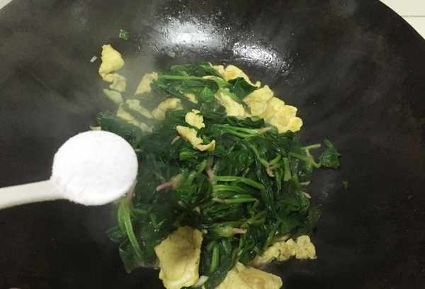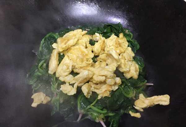 小贴士:菠菜是一种富含叶酸和维生素的蔬菜。不能直接在锅里煎。菠菜的根必须切掉。菠菜要洗净,用热水烫一下,加少许盐,使颜色更翠绿。不会阻碍钙的吸收,而且还是用冷水泡的,味道更好。鸡蛋要先备好,鸡蛋先用中小火煎熟,再把菠菜和鸡蛋炒熟,最后调味出锅。