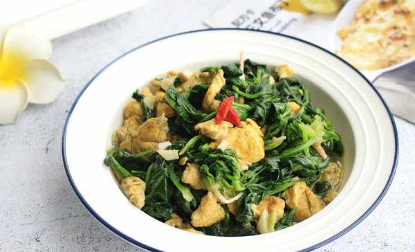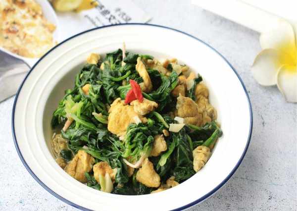 菠菜是冬季最敏感的嫩叶蔬菜。还不如凉拌凉拌。它是用鸡蛋和龙莓炒的。色香味俱佳,营养全面。看起来非常美味,还能促进各种营养物质的消化和代谢。由于菠菜中含有钙质和维生素C,所以小孩子要多吃钙质来补充,铁质含量也不低。补充钙和铁有很多好处。