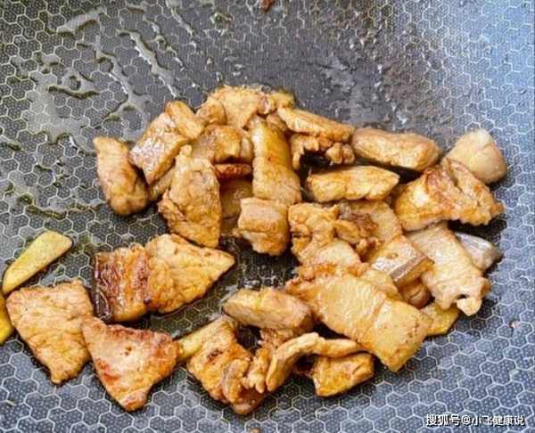 第二:五花肉用清水洗净,换刀切成小块(五花肉不要切得太厚,肉质不好),也可以用料酒和生抽酱汁,准确的说是加盐,把瘦五花肉这样炒,味道更香。
