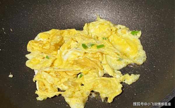 第八步:炒锅加少许油,加入蛋液翻炒至熟,捞出待用炒锅中加入少许色拉油,放入葱花和姜片,快速爆香滑入腌制好的大虾,将大虾煎至变色。