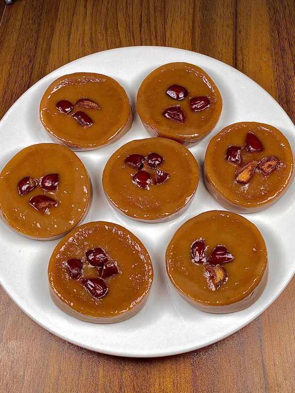 2、模具刷油,倒入红糖糯米糕,上锅蒸20分钟即可。