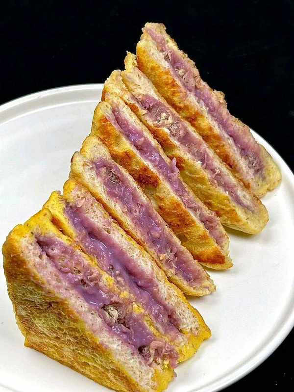 主要材料:吐司、芋头、紫薯、纯牛奶、肉松、鸡蛋。