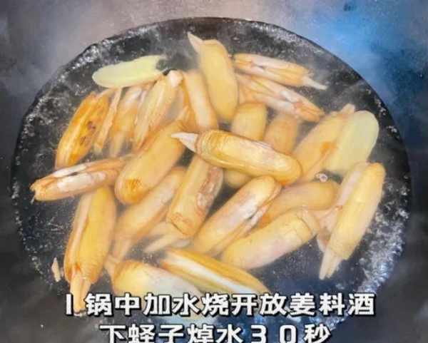 烹饪技巧:选择合适的蛏子和蛏子肉。蛏子要用盐水浸泡,焯水去腥。蛏子肉和蛏子肉的烹调顺序并不难学。