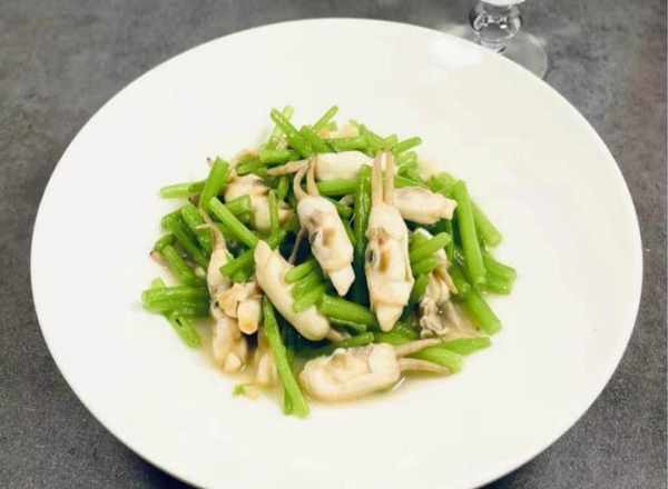 炒蛏子肉菊花是一道营养美味的佳肴。剃刀肉非常肥腻。它与菊花很相配。味道很清淡,充满了美味,营养丰富。大人小孩都喜欢。