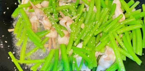 第七步:倒入少许蛏子快速翻炒,加少许盐和鸡精,加一勺蚝油,加水淀粉勾芡,搅拌均匀,出锅,这道炸蛏子肉就是蛏子菊花了准备好。