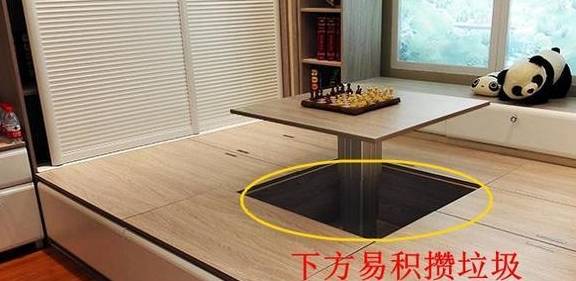 许多小户型家庭为了提高空间利用率会考虑在家装升降式榻榻米。然而这种榻榻米的使用价值其实有待商榷。除了每次取物时需要将所有上方的东西移开之外,每个单独分开的小空间利用率也被大幅下降。