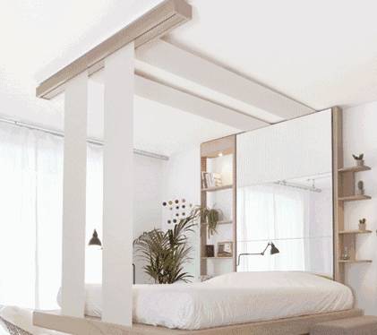 许多人会因为墨菲床强大的隐匿功能而种草。但是在实际使用中,墨菲床隐藏时候容易积攒灰层、细菌;在每一次拉开使用时又需要重新铺贴床品,十分繁琐。如果不是户型面积极小的情况下,一般不推荐使用类似的折叠床。
