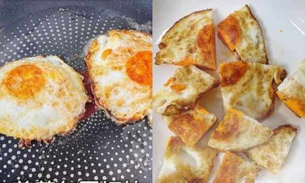 第三步:锅底加少许橄榄油,锅中放入两个鸡蛋用小火慢慢煎至两面金黄,捞出晾凉切块小件。