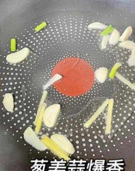 第四步:锅底加入橄榄油和猪油,加入蒜末和姜末,快速翻炒出香味,加入裙带菜略炒,加入几大碗开水烧开。