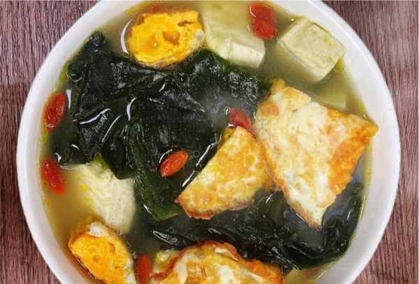 裙带菜荷包蛋豆腐汤是一道营养美味的素食汤。价格很便宜。汤很鲜美,低脂又好吃。它可以加速新陈代谢并改善消化。你喝得越多,你就越健康。