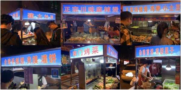 每天下午6点左右,美院附近一条几十米长的街道,有着大约20家左右的摊位,一家挨着一家,每个摊位都是值得一吃再吃的美味。