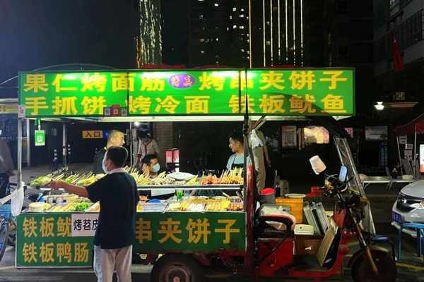 北郊新晋的宝藏夜市街当属紫葵,一片不算大的空间里容纳了至少有二三十家小摊,每家摊摊都整齐有序排列着,伴随着吆喝声和熙熙攘攘的人群,形成独有的烟火人间。