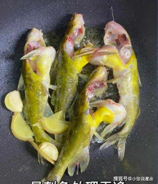 3:黄辣丁放在容器里,加上一些姜丝和葱段,加上少许料酒,撒上一丢丢食盐,让黄辣丁腌制20分钟。