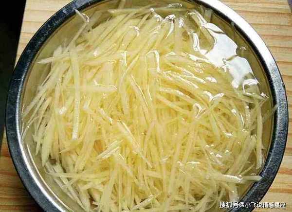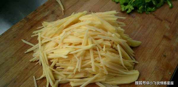 厨房小贴士:土豆的做法很不错。炸裂土豆是有技巧的。不要直接炒磨碎的土豆。土豆丝用清水浸泡,去除里面的淀粉。黑色的。炒土豆条一定要用大火炸。一开始不要加盐和醋。最后一定要加调料,以免炸出来的土豆特别黑不脆。