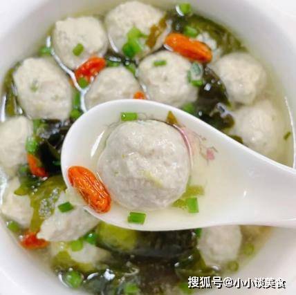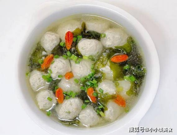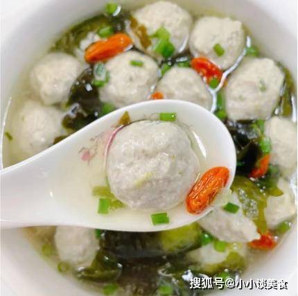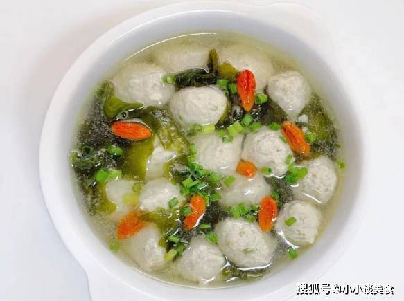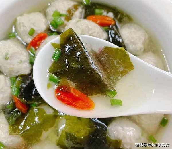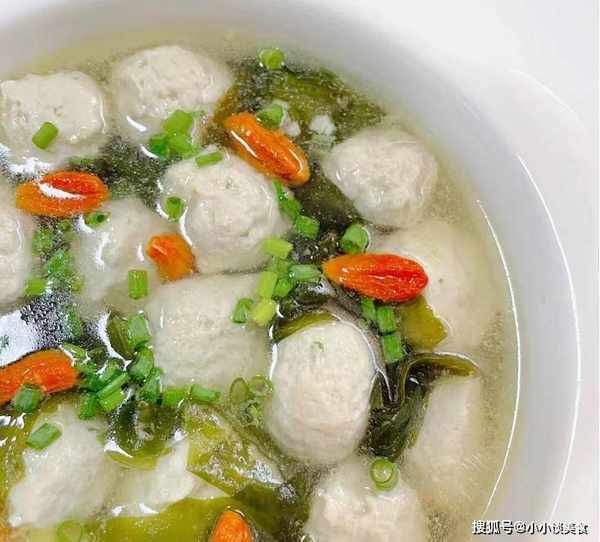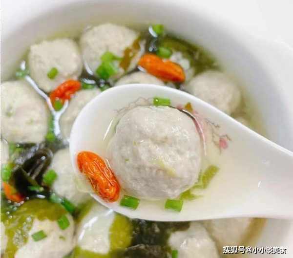 裙带菜莲藕球枸杞汤是一道美味的汤。丸子由莲藕和猪肉制成。肉丸特别Q弹。和裙带菜一起在锅里煮,味道非常鲜美,营养特别全面。它变得越来越好,你可以从早点吃中受益。