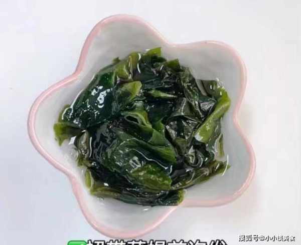 1:选择裙带菜、莲藕、猪肉和枸杞子,先将裙带菜放入碗中,加入温水浸泡至变软,切成小块沥干水分。