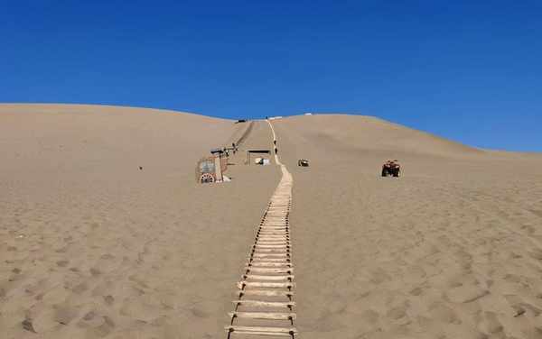 趣闻君是第一次来月牙泉,除了视觉震撼之外,爬鸣沙山也成为一大乐趣。爬沙山和普通的爬山差异真的太大,需要莫大的勇气和体力。上沙山的路只有一条软梯,最后一段路程连梯子都没有,感觉往上爬三步就会退一步,踩在软软的沙子上,瞬间没有了安全感,当时还真怕摔一跤又掉回山脚之下。