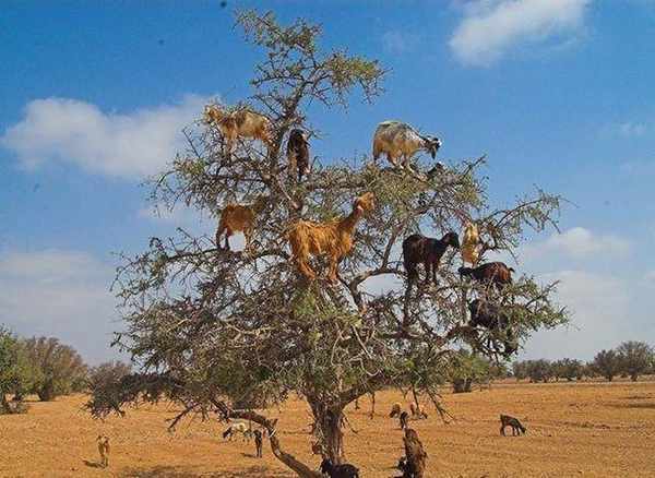第一眼看到这张照片,你一定会以为是PS照片吧?事实上,这是真实的照片,这些山羊上树吃树枝上的叶子。