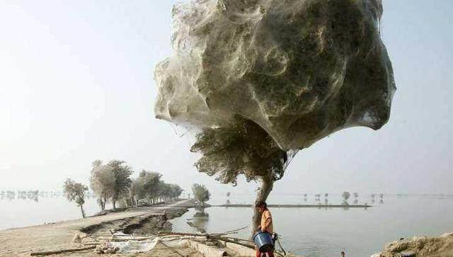 这棵令人毛骨悚然的鬼树实际上是巴基斯坦信德村数百万蜘蛛的生存行为。