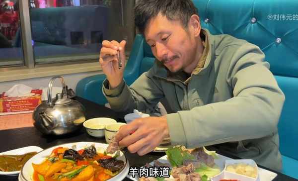 买好补给,刘伟元又去吃饭,还是昨天吃过的饭店,今天点了手抓羊肉、家常豆腐,还要了一碗米饭,只见刘伟元左手一块肉右手一块豆腐,狼吞虎咽,吃得满嘴流油,表示太美味啦!
