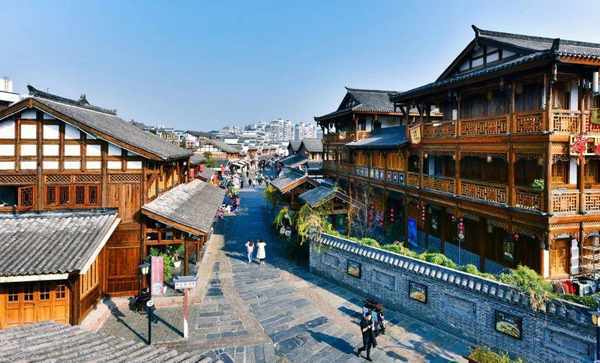 漫步于古色古香的传统建筑间,头顶广阔无垠的天空,脚踏古朴的青石板路,还有些老手艺人引得众人围观,让人感觉别有一番风味。