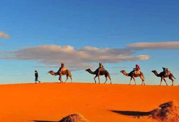 如果你喜欢荒芜的沙漠风光,来到摩洛哥,撒哈拉沙漠自是不容错过的景区,它是闻名全球的第2大荒漠。这里基本没有大面积的植被生存,一望无际的沙漠和骆驼景象勾勒出了一幅美丽的风景画,让冒险者向往和憧憬。在这片沙漠中生存的动物种类很多,专家在考察的时候还发现了刻有动物和人像的壁画,形态各异、千姿百态的壁画向人们展示了远古时期人们的生活场景。