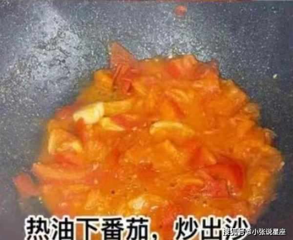 5:锅底加少许橄榄油,爆香葱姜,倒入少许西红枣片,稍炒片刻,加入半勺番茄酱,加入一小碗酱汁。沸水煮沸。
