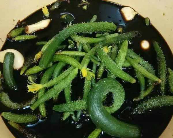 锅里少来点油,葱姜八角花椒炸香之后,泼在料汁里面,再放点小米辣和拍蒜,接着把腌好的黄瓜攥干水分,放进腌汁里面,腌上一天就可以吃啦,口感脆嫩,外地人都不知道。