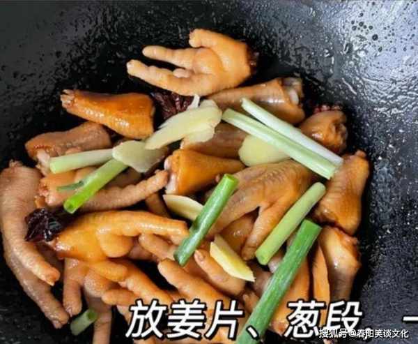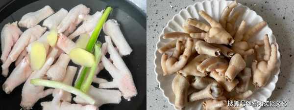 第三步:用清水洗净一些调料,将凤爪放入锅中,扔姜姜片,加入料酒,倒入适量冷水,继续加热片刻。,变白并移除。