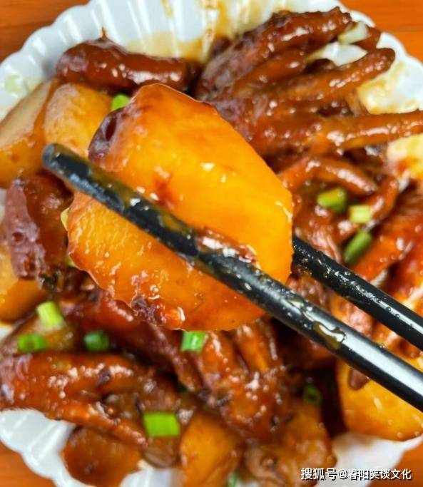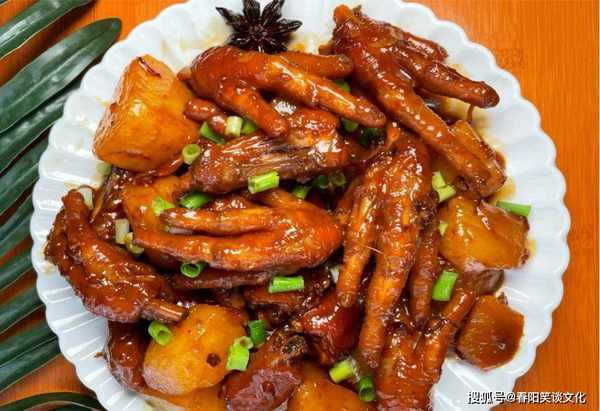 土豆焗凤爪是我家客人最爱吃的一道菜。土豆非常好吃。鸡脚很有弹性,很容易从骨头上取下来。