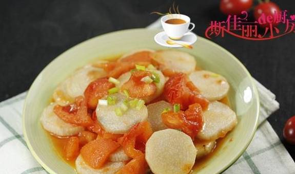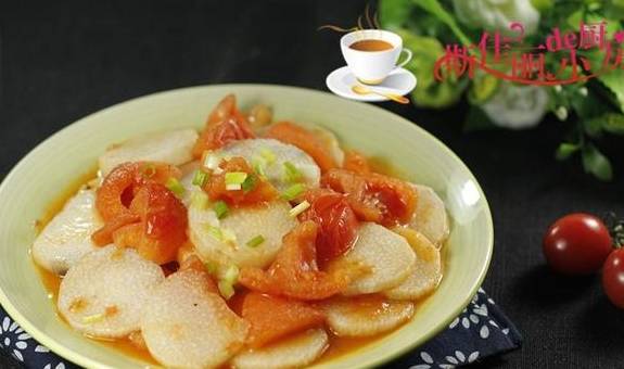 制作:1.准备好材料;2.烧锅开水,加入点盐,将山药放入水中焯煮一分钟后捞出;3.热锅凉油,放入西红柿进去翻炒;4.翻炒至西红柿微微出汁后加入山药进去翻炒,再可加入少许水;5.最后加入盐调味;6.盛入盘中,表面撒上小葱末。