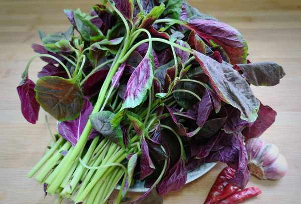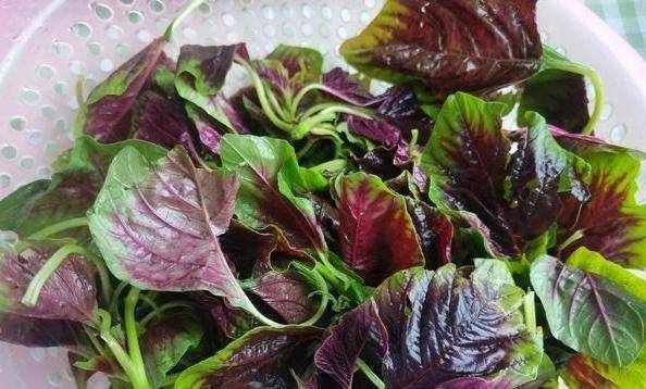 红苋菜是一种鲜嫩的蔬菜。叶子具有很高的营养价值。炸鸡很好吃。与米饭一起食用时,一口红汁是完美的。红苋菜叶中的叶绿素含铁、钙含量高,并含有部分植物纤维,不仅提供营养需要,补血补钙,有效排除肠道内的有害物质,减少便秘的可能性。多吃对身体好。