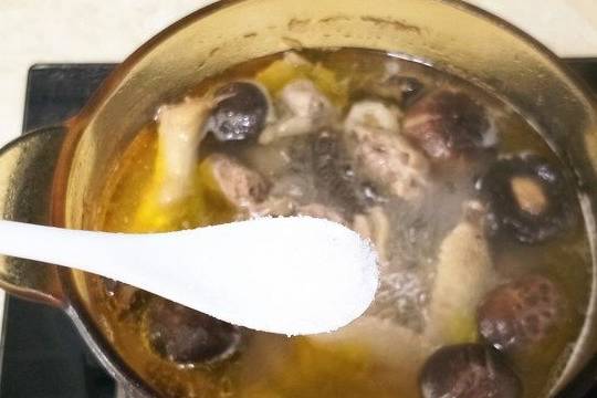 9.放入泡软洗净的花菇,继续中小火炖煮1小时