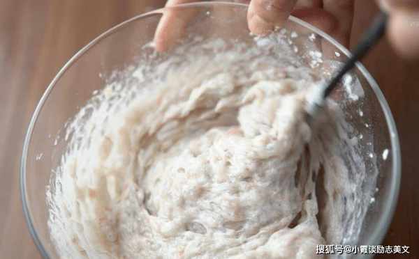 步骤3:虾肉泥加上少许料酒来去腥,撒上一些食盐,加上一勺生粉,一个鸡蛋清(记得鸡蛋黄不要放,放了会让虾仁原本的色泽变黄)