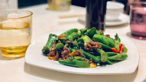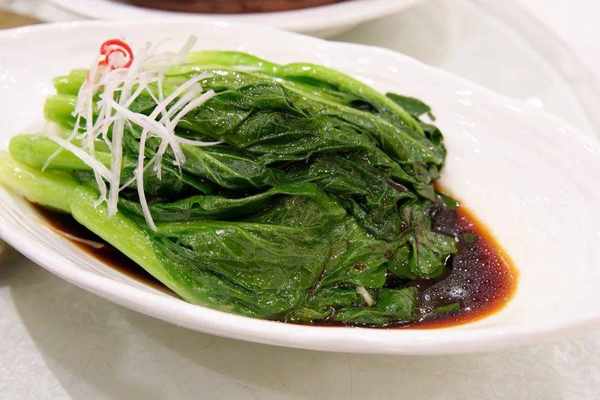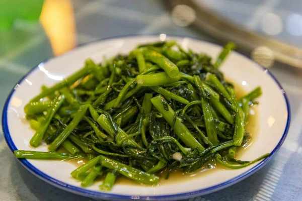 芥兰是华南一带的特产,菜杆很厚实,入口则有些微苦。芥兰最经典的做法是冰镇,先焯水断生,再盛盘冰镇。
