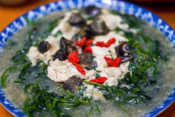豆苗、菠菜、枸杞叶、番薯叶、桑叶,都很适合做上汤的。皮蛋和瘦肉的加入让汤汁更为鲜美,也让整道菜的口感更加舒缓,更加柔和,的确很难不让老饕们如此偏爱啊。