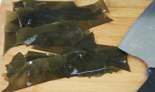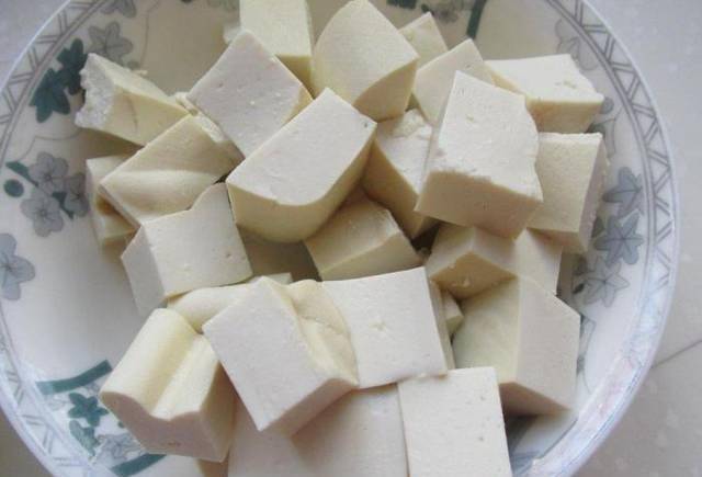 第三步:将豆腐用清水冲洗干净,轻轻漂洗。把豆腐切成小块。如果条件允许,可以用热水煮豆腐,去除豆腐的腥味。沥干水以备后用。将海带用热水泡软,切去海带蒂,切块待用。