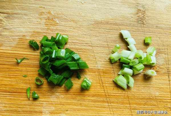 Step2:小葱和大蒜切碎,枸杞提前洗净沥干水备用,准备好土鸡蛋和萝卜丝,开始煮这道荷包蛋枸杞青萝卜丝蔬菜汤..