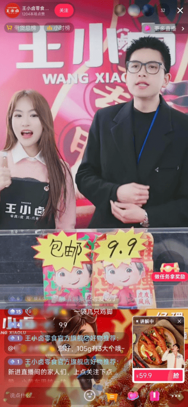 不仅如此,「摩登消费」还观察到,在抖音上,经常会刷到王小卤等新卤味品牌“三班倒”全天候直播卖货。