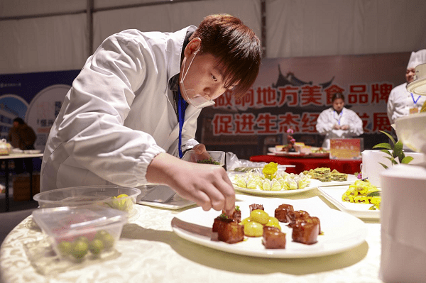 当天的美食大赛分为个人赛和团体赛,其中个人赛由30名餐饮企业的职业厨师参赛,选手在90分钟内分别以兴化本地“禽肉”“河鲜”“时蔬”为主材,制作3道创意菜品(点),充分展现各自的技艺水平。而团体赛则以乡镇(街道)为代表队,兴化26个乡镇(街道)组织厨师各制作不少于10道能够代表本地饮食特色的宴席展示。