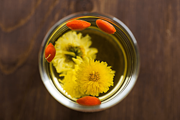 菊花枸杞茶:菊花10g、枸杞10g 、适量冰糖 ;300ml热水冲泡 ,一周约2-3次;脾胃虚寒、寒咳等忌喝。