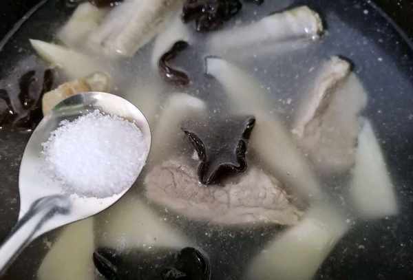 第六步:小火慢炖1小时,加入2大勺盐,少许胡椒粉,最后加入一小把洗净的枸杞,小火慢炖排骨。