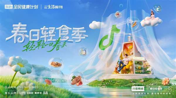 为助力商家更好地把握轻食产品新趋势实现生意增长,同时也让消费者在轻巧舒适的春日邂逅品类更丰富、口感更好的轻食体验,抖音电商食品健康行业顺势而为,从“轻”出发,于3月20日推出「抖in全民健康计划|春日轻食季・轻轻一口春天」活动。此次活动,抖音电商食品健康行业联动空刻、大希地、逮虾记、桂格等品牌和科普、美食、营养师等多类型电商作者,用“轻”全方位展现健康轻食理念为美好生活带来的助益。