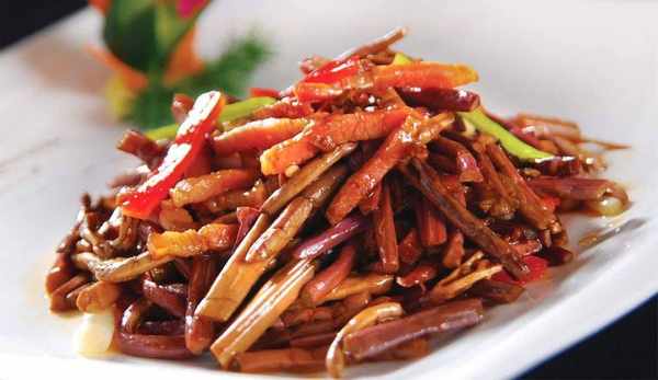 2 热油,放入肉丝翻炒,变白的时候盛出