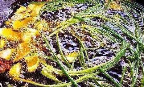 1、油烧至300度,加入姜、葱、洋葱、香叶、八角、山奈、花椒、香茅草各3克,炸出香味,再把它们捞出丢弃;