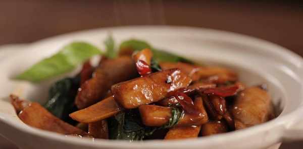 三杯松阪杏鲍菇,香油让软嫩的猪颈肉更加入味,温热的经典小炒上桌。