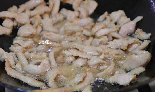 5、锅内烧热适量的油,油温升高后放入肉片翻炒。
