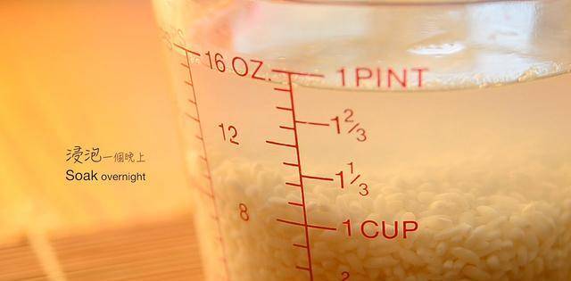 不管你用的是长糯米还是圆糯米,买回来一定要像普通的白米一样洗干净,然后用清水浸泡一段时间(至少三四个小时)。最好是前一天晚上开始泡,这样早上就可以用了。