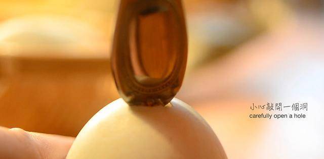 我在这边市场买的是用红土泡过的,所以蛋壳外面一定要先洗干净。接下来,在蛋壳的尖端小心地挖一个小孔(蛋黄在钝端),去掉小圆圈,倒入蛋清,只留下咸蛋的蛋壳和蛋黄。