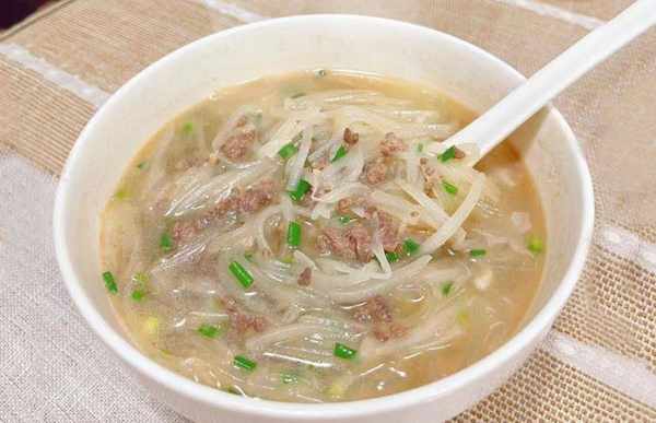 白萝卜泥肉末汤是春季必饮。磨碎的白萝卜吃起来很甜很脆。滋补身体,暖胃驱寒,天天喝不会发胖。